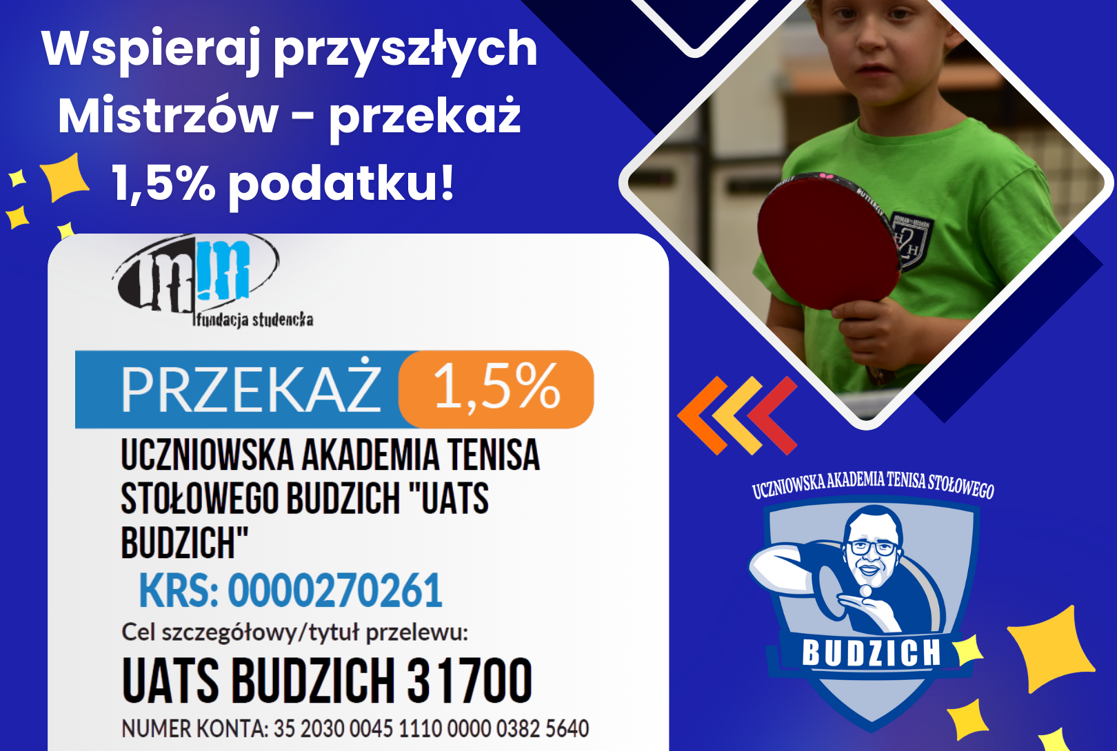 Razem z UATS Budzich rozwijaj swoje umiejętności, zdobywaj nowe doświadczenia i osiągaj sukcesy! Tworzymy Akademię Mistrzów, gdzie pasja, ciężka praca i radość z gry prowadzą do zwycięstw – zarówno przy stole, jak i w życiu!